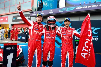 TOYOTA RACING sætter sig tungt på podiet ved sæsonens åbningsløb i weekenden på Imola-racerbanen i Italien i World Endurance Championship også kendt som Le Mans-serien. Det er nemlig både blevet til sejr for teamets hybridracerbil TR010 HYBRID med nummer 8 og til en tredjeplads til Toyota hybridracerbilen med nummer 7.